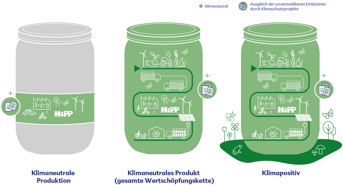 Für ihre interne Kommunikation hat uns Hipp gebeten mit Ihnen eine Infografik zum Thema klimaneutrales Produkt zu entwickeln. Damit wollen Sie Ihre strategischen Zukunftsvisionen für Ihr Team auf einen Blick sichtbar machen. Die Unterschiede zwischen klimaneutraler Produktion, klimaneutralem Produkt und klimapositiv werden veranschaulicht.